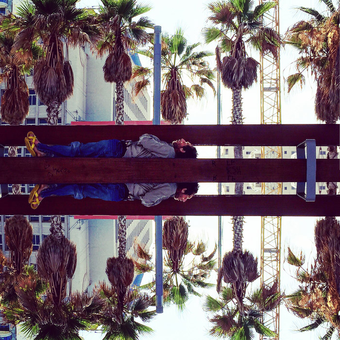 About “Sleeping Rough” – In this exhibition, Dana documents “Sleepy People” scattered throughout urban spaces. (*some are Homeless others are plain tired...) The exhibition showcases selected pictures from a collection of over 300 photos. All images are 100% authentic and not staged! Each image is printed on a white pillowcase and is hung on clotheslines with wooden pegs. This unique and playful display, creates a fresh perspective and a profound experience. It evokes the viewers to contemplate their own existence, and suggests that anyone at any time may find themselves on the edge and on the street, “Sleeping Rough”.