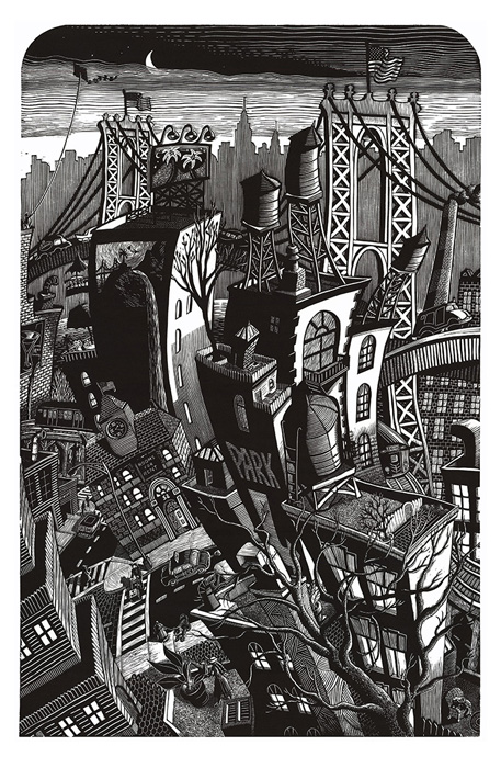 It was there that I became inspired by the graphic works of such master printmakers as Clare Leighton, Fritz Eichenberg, and the graphic novels of Lynd Ward which cemented my desire to become a professional printmaker and where the linocut became my passion and medium of choice. The medium also lends itself so well, with its high contrasts, crisp edges and angle friendly nature, to the rhythms and imagery of the city - the primary subject of my work.